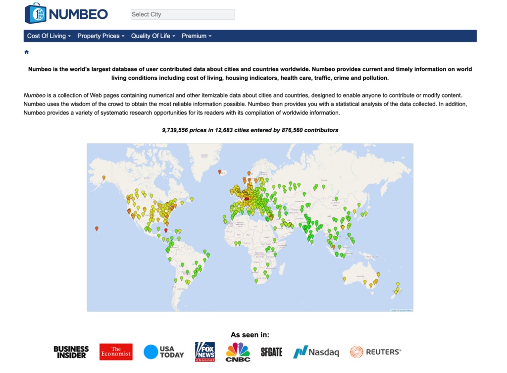 4. Numbeo: Comparing Cost of Living Worldwide
